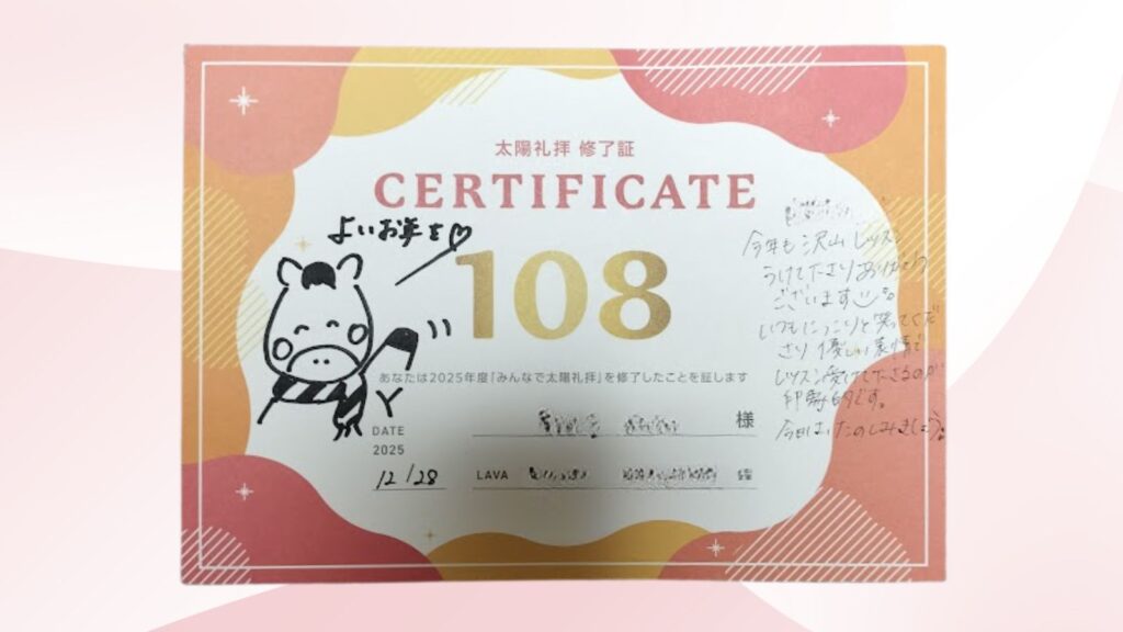 2025年締めくくりに12月28日に108回の太陽礼拝に挑戦しました。