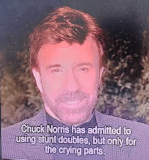 チャックノリスのミームのユーモアは比較的に日本人の笑いのツボに自然と入ると思います。彼のミームに沼っているネイティブスピーカーが多いのも笑える。